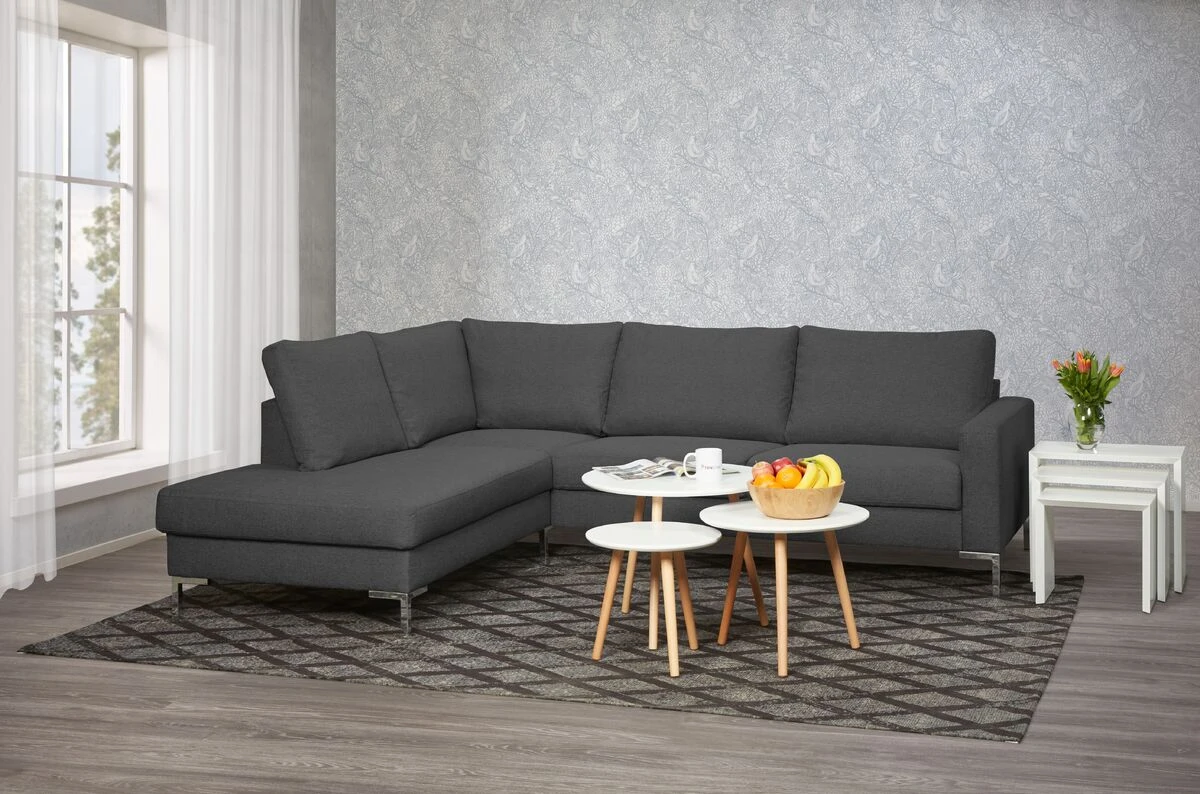 Iso ja moderni Tracy avokulmasohva tyylikkäällä ja kestävällä Malmö-huonekalukankaalla.