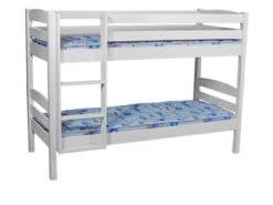 Tukeva ja turvallinen Nukkumatti-kerrosänky on valkokuultopetsattua mäntyä. Sänkyyn käy normaali 80×200 cm patja.