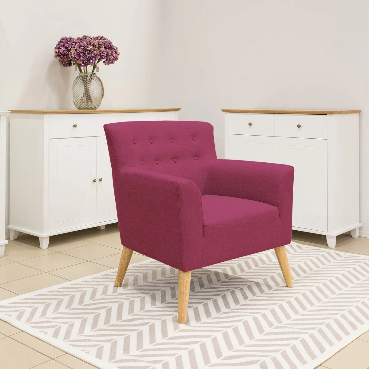 Aniliininpunainen Movie on raikkaan tyylikäs nojatuoli kodin kaikkiin tiloihin.