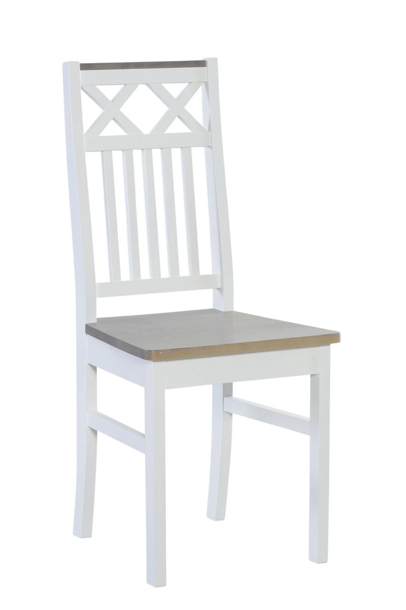 Emilia tuolin selkänojan klassinen ristikkokuviointi sekä selkänojan yläosan koristelista antavat tuolille persoonallisuutta ja tyylikkyyttä.