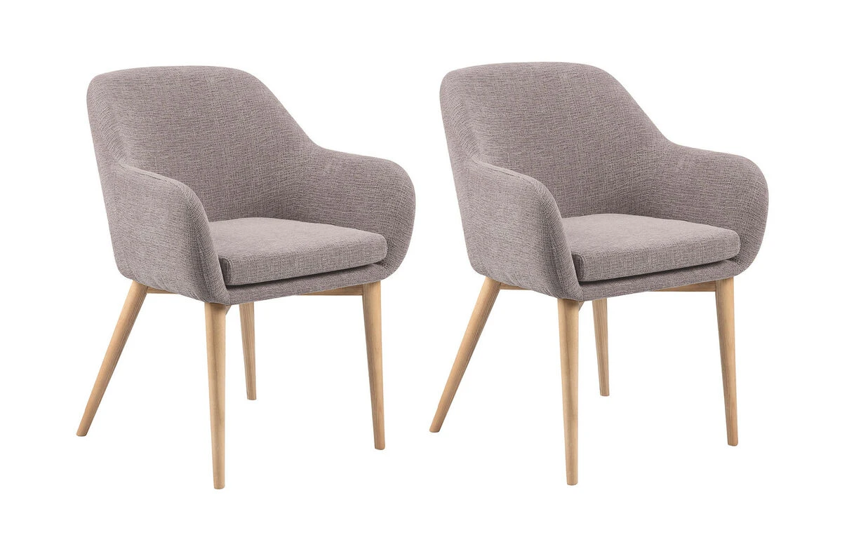 Kangasverhoiltu ruokapöydän tuoli massiivisaarni jaloilla.