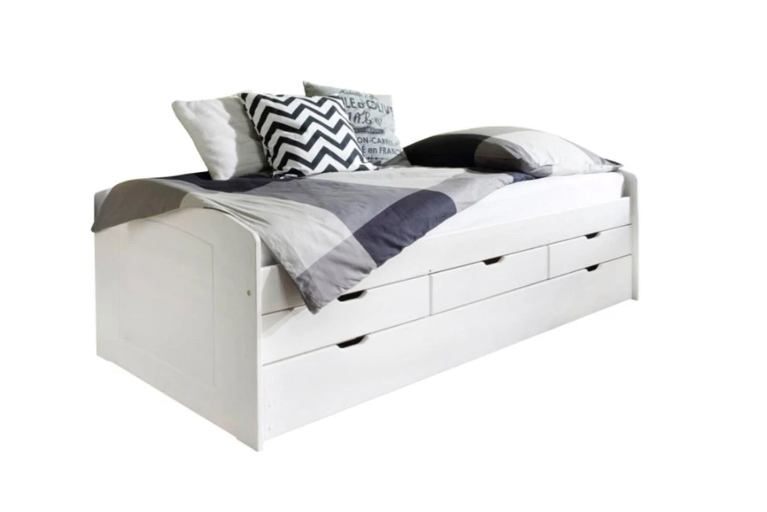 Massiivimännystä valmistettu Twin sänky varavuoteella sekä kolmella vetolaatikolla.