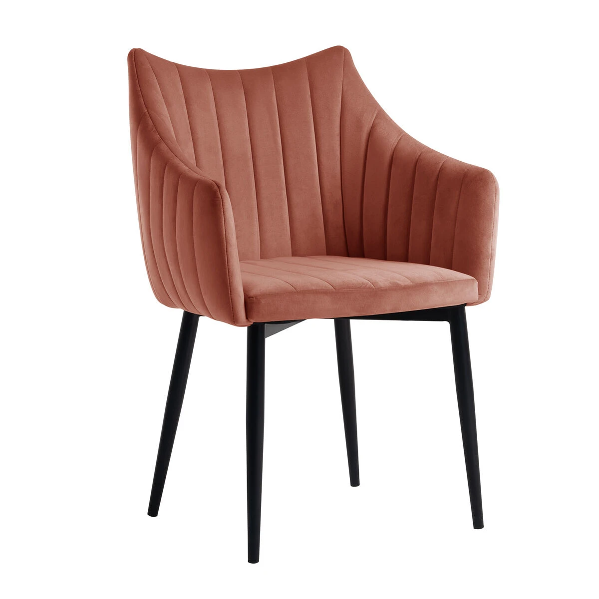 Moderni samettikankainen Olivia tuoli kuppimaisella istuimella ja selkänojalla. Tuolissa on koristeelliset tikkaukset ja pehmustettu istuin ja selkänoja.