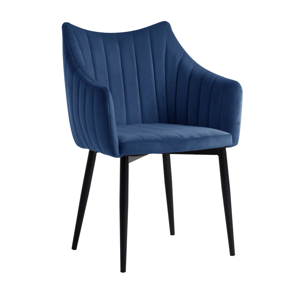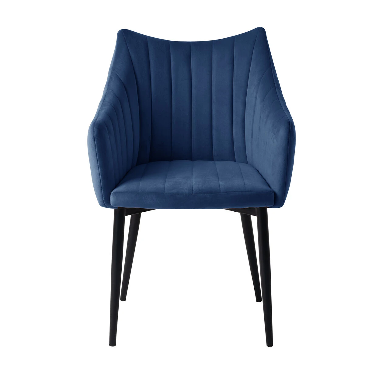 Moderni samettikankainen Olivia tuoli kuppimaisella istuimella ja selkänojalla. Tuolissa on koristeelliset tikkaukset ja pehmustettu istuin ja selkänoja.
